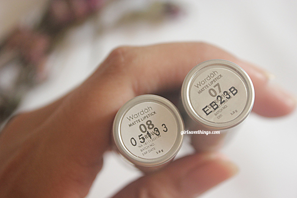 Karena saya suka sama teksturenya yang nggak bikin kering, akhirnya saya membeli Wardah Matte Lipstik ini namun dengan warna yang lebih bold, dan pilihan saya pun jatuh pada nomor 7 dan 8.